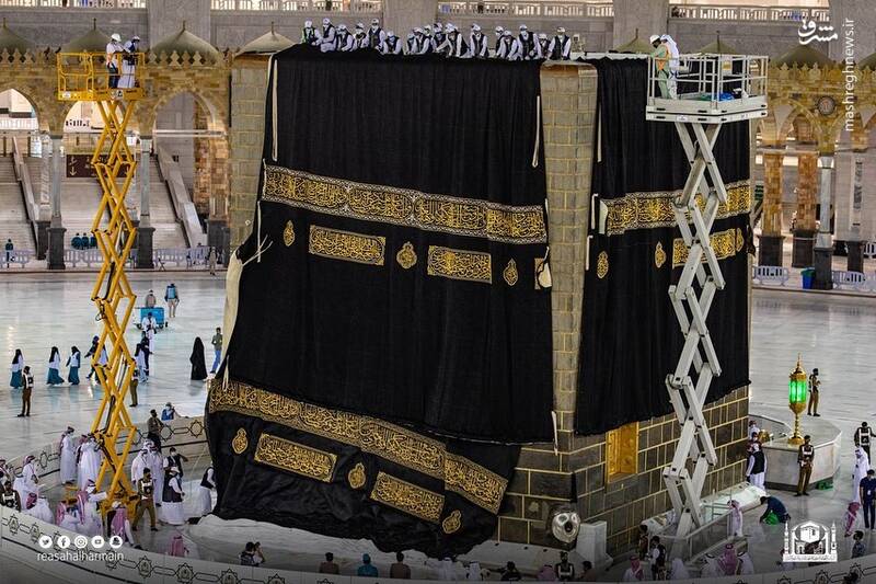 پرده کعبه هر سال در روز عرفه تعویض میشود و معمولا در فرآیند تهیه آن از خطاطی تا سوزندوزی حدود ۱۵۰ هنرمند مشارکت دارند.