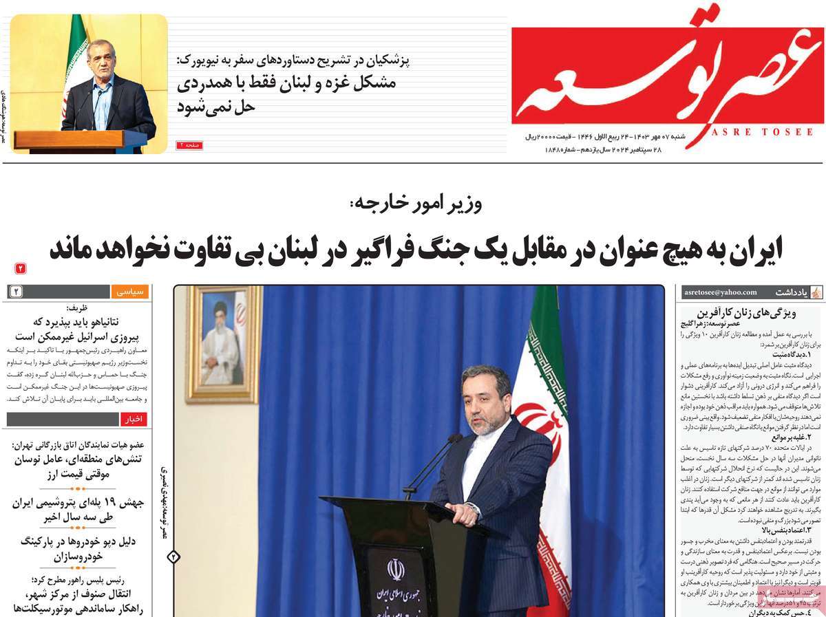 روزنامه جمهوری اسلامی 07 مهر 1403