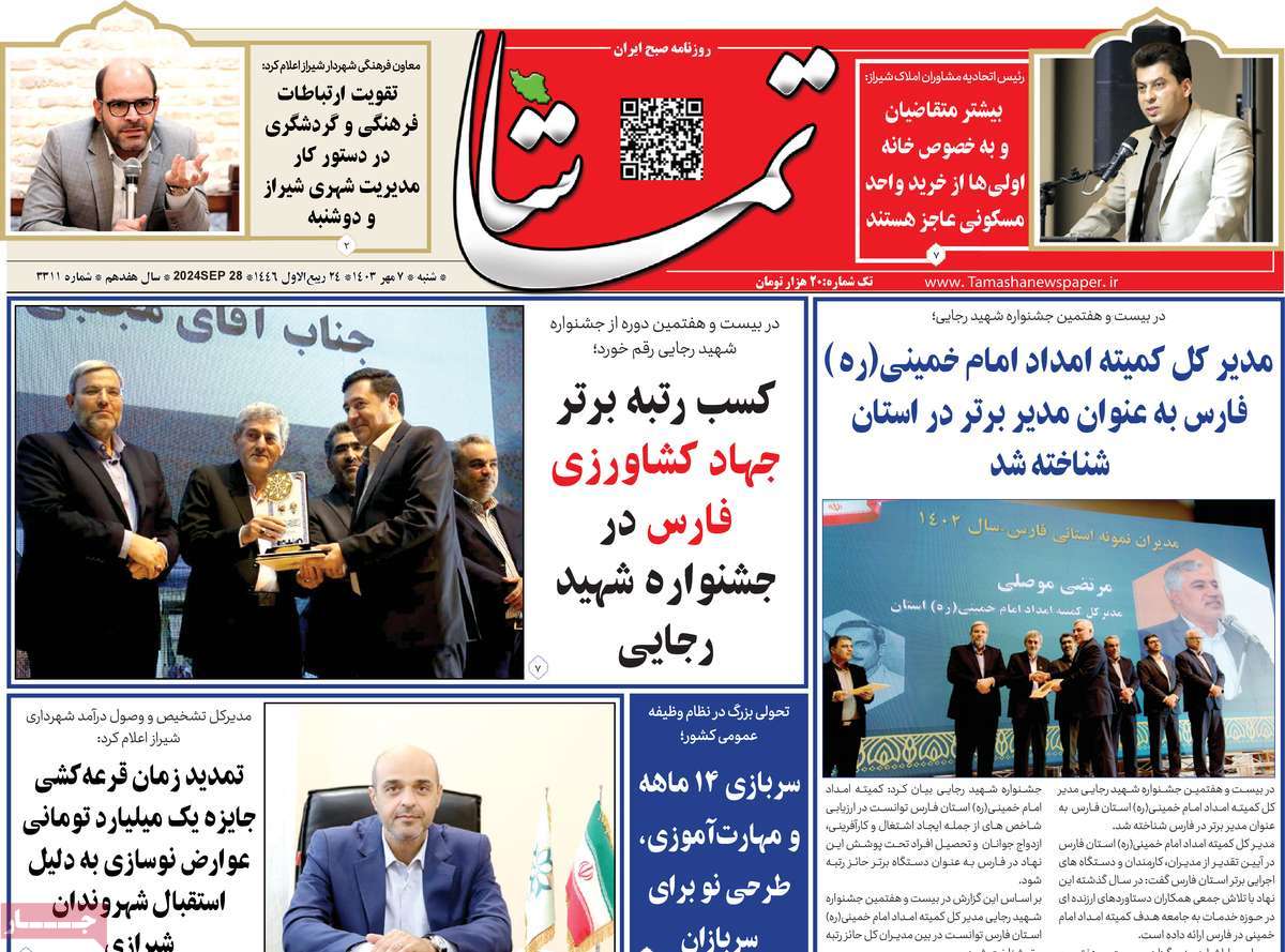 روزنامه سپهر ایرانیان 07 مهر 1403